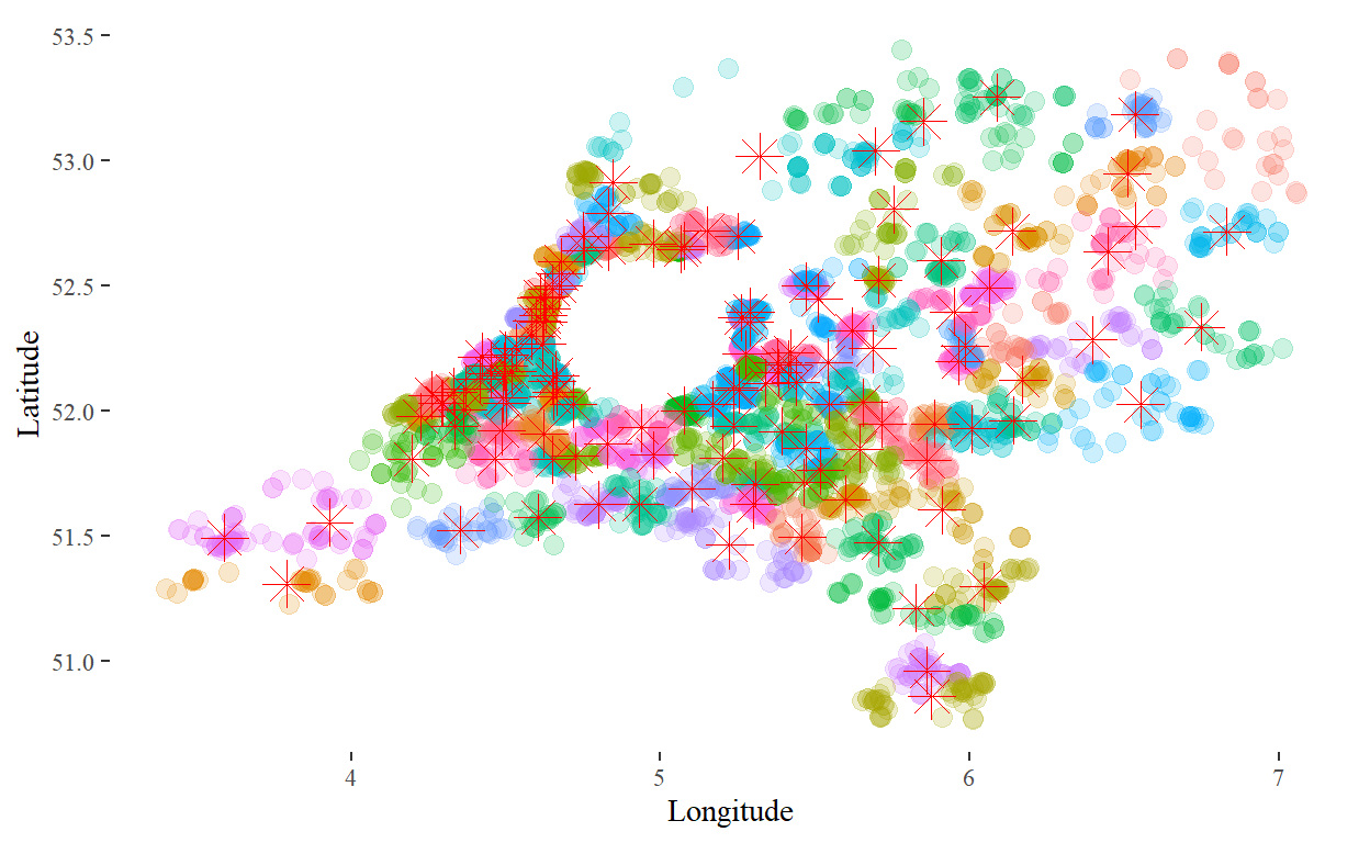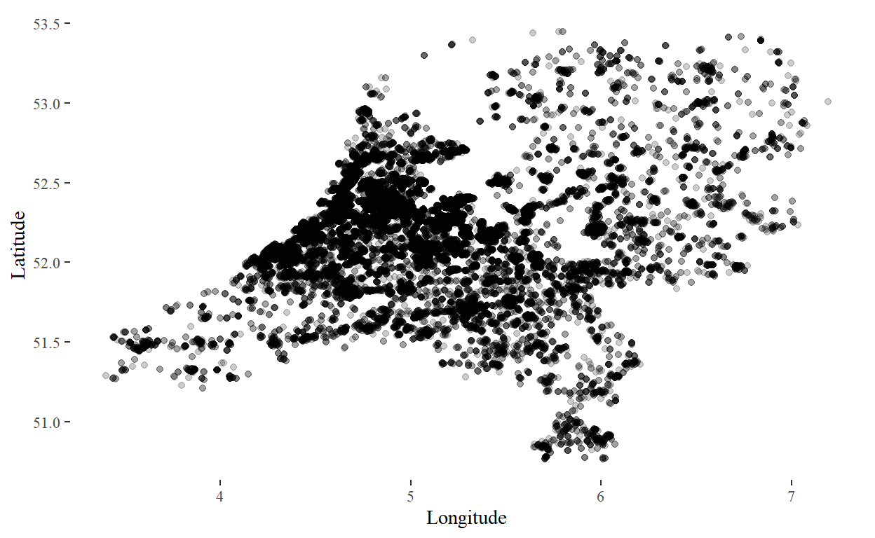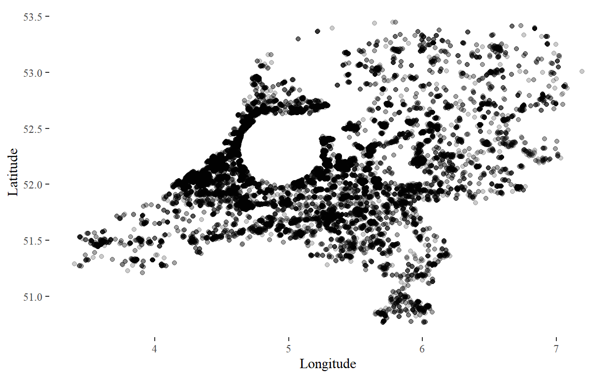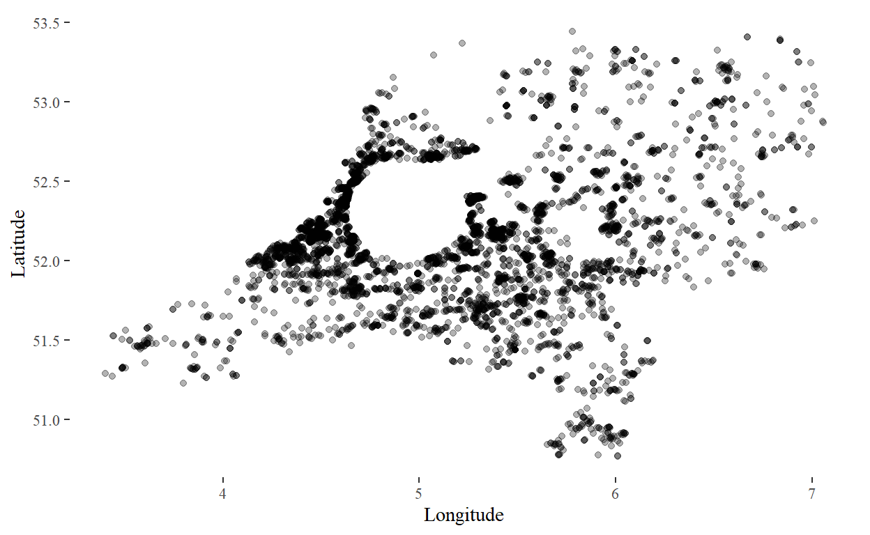 Indeed, it looks like nearby people are overrepresented: however, they are unlikely to make use of a coach service. Thus, we want to remove these from our analysis. As a rule of thumb, we remove all visitors that live within a 35km radius of central Amsterdam.