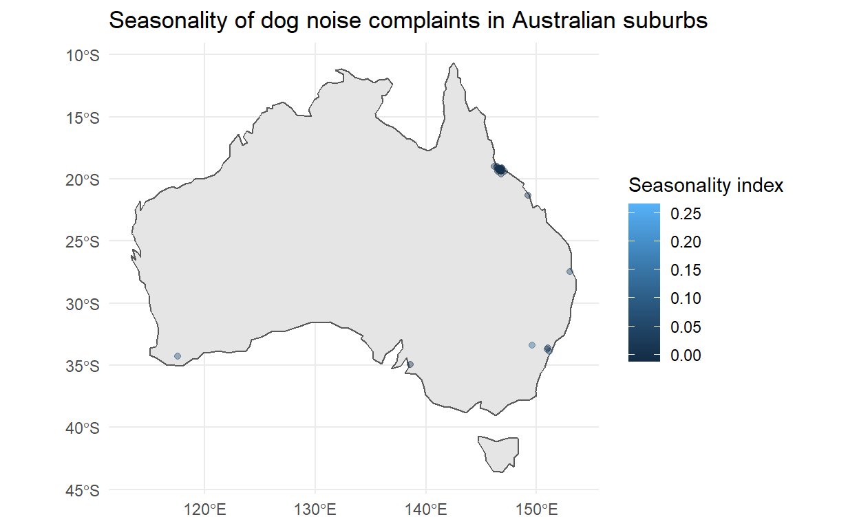 labs(title = 'Seasonality of dog noise complaints in Australian suburbs',